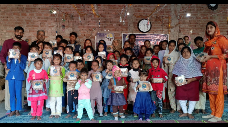 Following this, the team visited the Sunday school at BaghanWali District, which is 4 km from Garmulla District in Sheikhupura. Ms. Sumiya Liaquat is the Sunday School teacher, and the 28 attendees presented Christmas songs as part of their program. The CFAM team concluded the visit by distributing gifts to the attendees.
